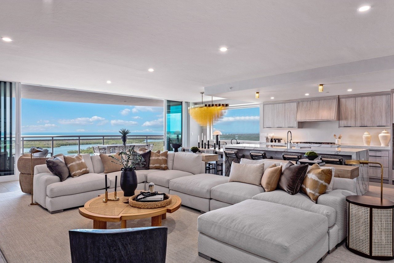 Each high-rise has a rooftop terrace offering sweeping views of the Gulf, a negative-edge pool, open-air fitness center and sky lounge—providing resort-style spaces for recreation and relaxation high above the water.